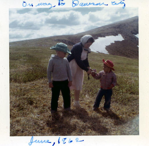 | Zalene with Frank and Ken on the way to Dawson City, Yukon Territory. |